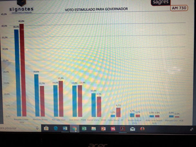 No levantamento estimulado que é aquele em que é apresentada uma cartela com nomes, o senador Ronaldo Caiado (DEM) que tinha 38,4% agora cresce para 40,8% dos votos válidos. José Eliton (PSDB) que tinha 13,8 aparece na segunda colocação com 13,9%.