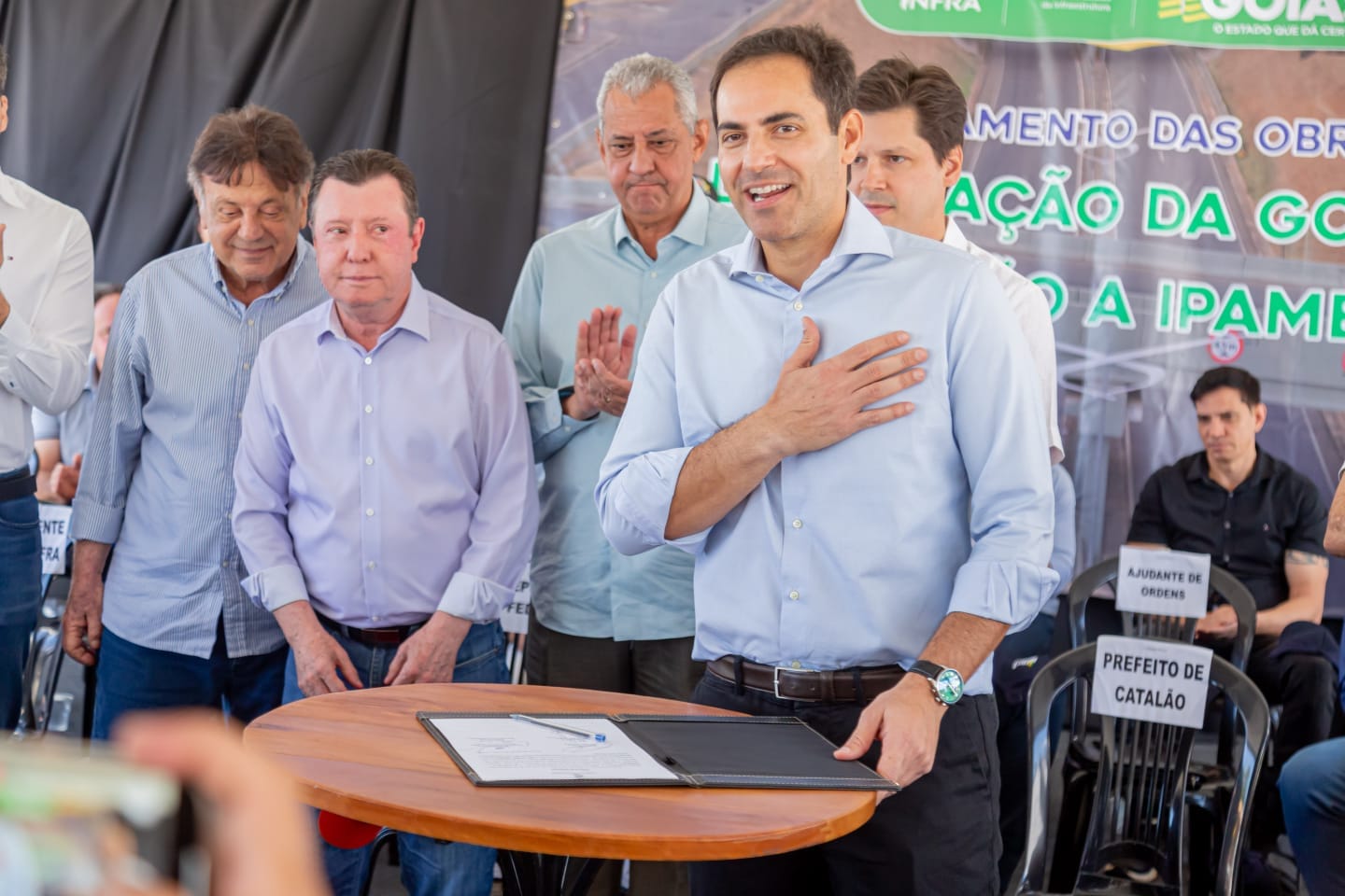 A solenidade contou com a presença do vice-governador Daniel Vilela, do presidente da Goinfra Pedro Sales, do secretário de Infraestrutura Adib Elias, dos prefeitos: de Catalão Velomar Rios, de Ipameri Jânio Pacheco e diversas lideranças regionais. Mas o momento de maior emoção veio com o pronunciamento do deputado estadual Jamil Calife, que se tornou a voz da população ao traduzir a alegria e a esperança que marcam este avanço histórico.
