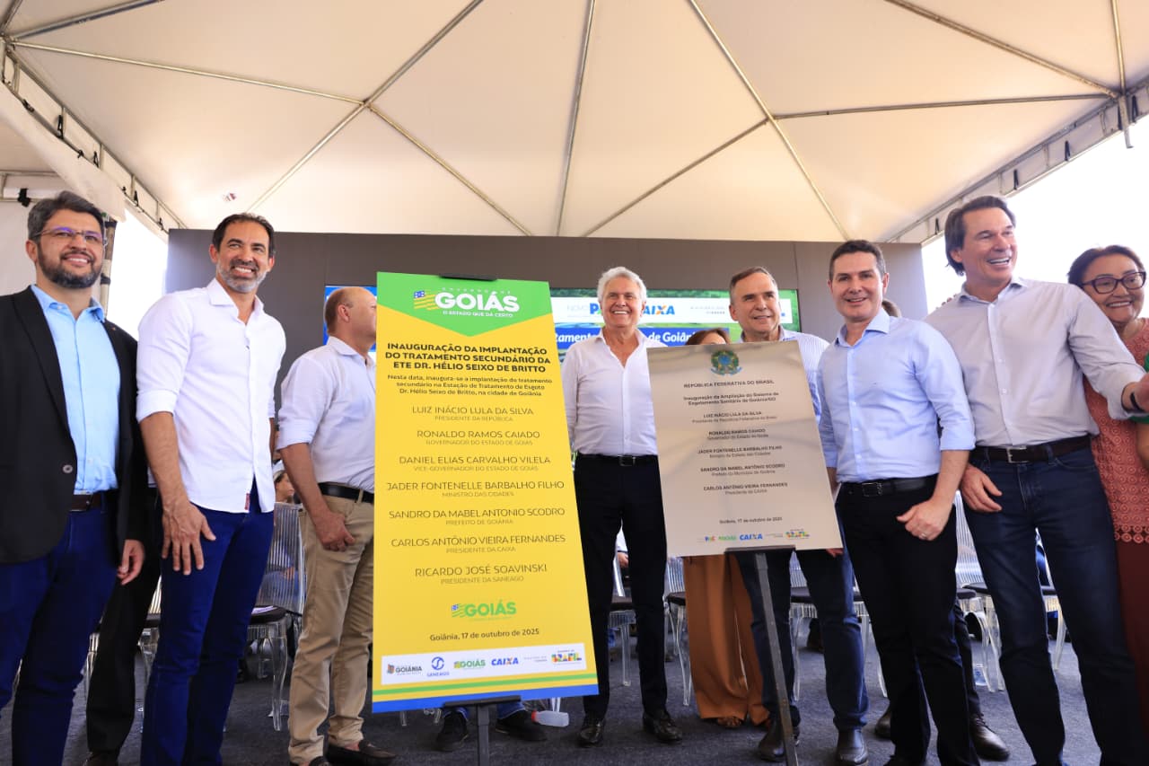 O governador Ronaldo Caiado inaugurou, nesta sexta-feira (17/10), a implantação de uma etapa secundária de tratamento de esgoto em Goiânia. Com investimento de R$ 133,2 milhões, sendo 66,2% oriundo do Tesouro Estadual, a obra na Estação de Tratamento de Esgoto (ETE) Dr. Hélio Seixo de Britto assegura mais um processo de limpeza, totalmente biológico, que eleva os índices de remoção de impurezas para mais de 90%.