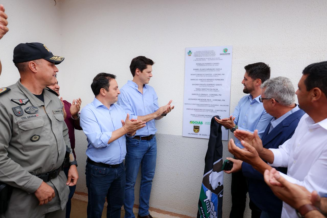 O vice-governador Daniel Vilela inaugurou nesta segunda-feira (20/10) a nova sede da 4ª Companhia do 2º Batalhão de Polícia Militar Rural, em Valparaíso de Goiás. A obra é fruto da parceria entre o Governo de Goiás, a Prefeitura de Valparaíso e a Secretaria Municipal de Meio Ambiente. A escolha pelo município foi motivada pela posição estratégica que Valparaíso ocupa no Entorno de Brasília. “Essa localização possui uma logística muito importante dentro do combate à criminalidade, especialmente para o Batalhão Rural”, afirmou o vice-governador.