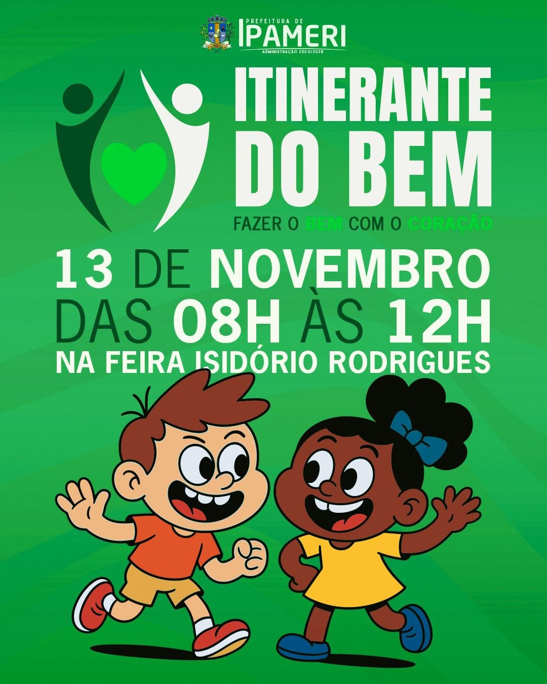 A Prefeitura de Ipameri, por meio da Secretaria Municipal de Assistência e Promoção Social, realiza mais uma edição do Itinerante do Bem, uma grande ação que leva diversos serviços e atendimentos gratuitos à população, reforçando o compromisso da Administração 2025/2028 com o bem-estar e a inclusão social.