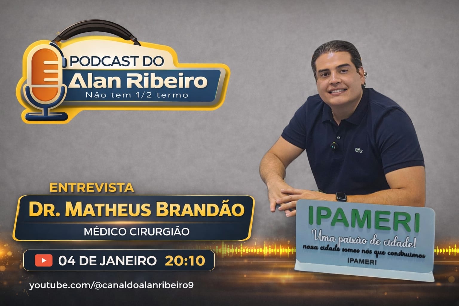 Nesta quarta-feira, 4 de fevereiro, a partir das 20h10, o Podcast do Alan Ribeiro recebe um convidado especial para uma entrevista franca, direta e necessária: Dr. Matheus Brandão, médico cirurgião.
