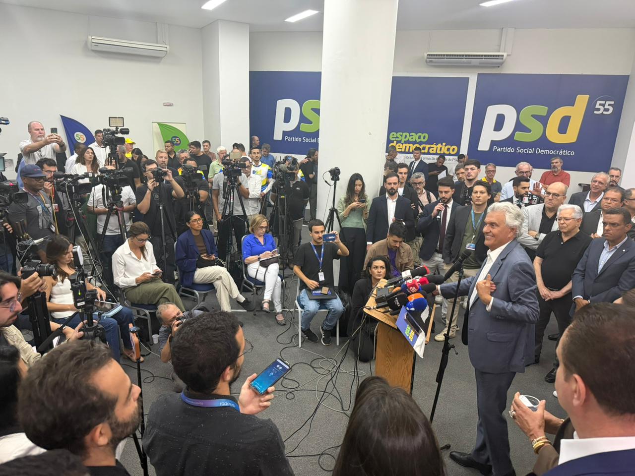 Caiado oficializou sua entrada no PSD em 16 de março deste ano, em Jaraguá (GO), durante evento que reuniu diversas lideranças políticas, entre elas Gilberto Kassab, que abonou sua ficha de filiação, até então o governador estava filiado ao União Brasil.